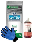 FARMINA Vet Life Dog Renal 12kg & LAB V Olio di Salmone per cani e gatti 1000ml + Guanto per pettinare il pelo di cane e gatto GRATIS!