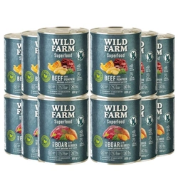 ( Quantità di prodotti: 53 )WILD FARM Superfood Manzo/Cinghiale 12x800g cibo per cani senza cereali