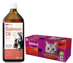 WHISKAS Adult bustine 40 x 85 g Classic Meals - cibo umido per gatti adulti, in salsa (tagli con: manzo, pollo, agnello, pollame) + LAB V Olio di salmone con maggior contenuto vitaminico 500ml