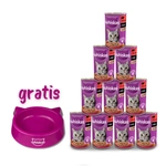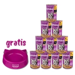 WHISKAS Cibo umido per gatti 1+ con anatra e gelatina 10x400g + CIOTOLA PER GATTI GRATIS