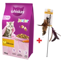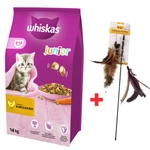 WHISKAS Cibo secco per gattini Junior con pollo 14kg + Canna da pesca per gatti Dingo
