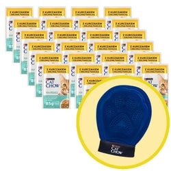 CAT CHOW Hairball Cibo per gatti con pollo e fagiolini in salsa 26x85g + Guanto per grooming toelettatura - Cat Chow